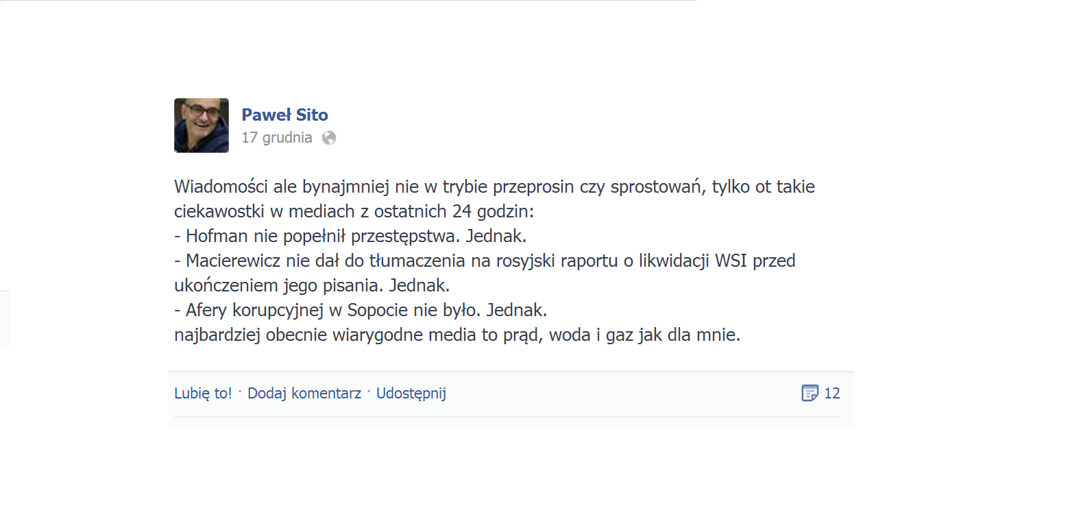 Kilka dni temu Paweł Sito napisał na Facebooku smutną notkę podsumowującą ostatnie wyczyny polskich dziennikarzy:
