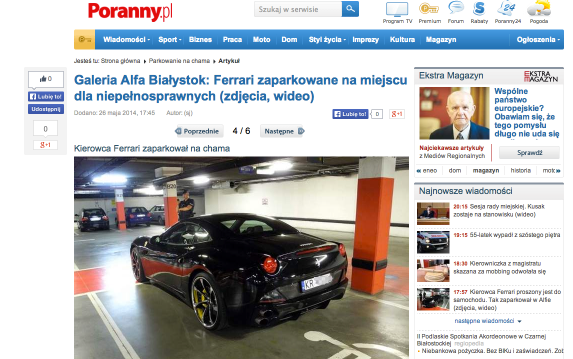 Ostatnio cicho było o szefie klubów gogo Cocomo, Janie Szybawskim, więc młody biznesmen postanowił o sobie przypomnieć. W piątek jego auto zaparkowało na parkingu jednej z galerii handlowych w Białymstoku. Ale kierowca chyba się bardzo spieszył, bo wybrał miejsce dla niepełnosprawnych.